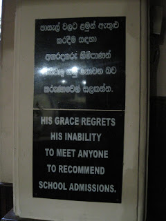 am vergangenen montag begann ein reigen an festen, der uns bis weit in den dezember hinein in der erzdiözese colombo auf trab halten wird. an diesem tag - für österreicher der festtag des hl. leopold, stifter von klosterneuburg, heiligenkreuz und kleinmariazell - hat erzbischof malcolm ranjith geburtstag, zugleich ist es der gedenktag seines hl. namenspatrons albert des großen.der tag begann mit einer hl. messe im archbishop's house (da gab es natürlich auch eine gabenprozession, wo man sich fragt: was ist da drin? s.o.), zu der besonders die ordensschwestern eingeladen waren (mit anschließendem frühstück - auf dem bild ist zwar der tisch blank, aber es soll etwas zu essen gegeben haben).